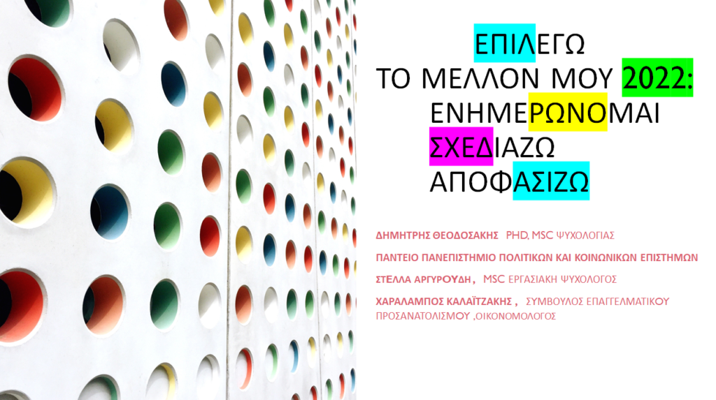 ΕΠΙΛΕΓΩ ΤΟ ΜΕΛΛΟΝ ΜΟΥ 2022. ΕΝΗΜΕΡΩΝΟΜΑΙ-ΣΧΕΔΙΑΖΩ -ΑΠΟΦΑΣΙΖΩ.