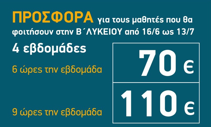 – θα γνωρίσετε την ύλη της Β΄ λυκείου και θα αρχίσετε να εξοικειώνεστε μαζί της, ώστε το Σεπτέμβρη να μη βρεθείτε προ εκπλήξεων